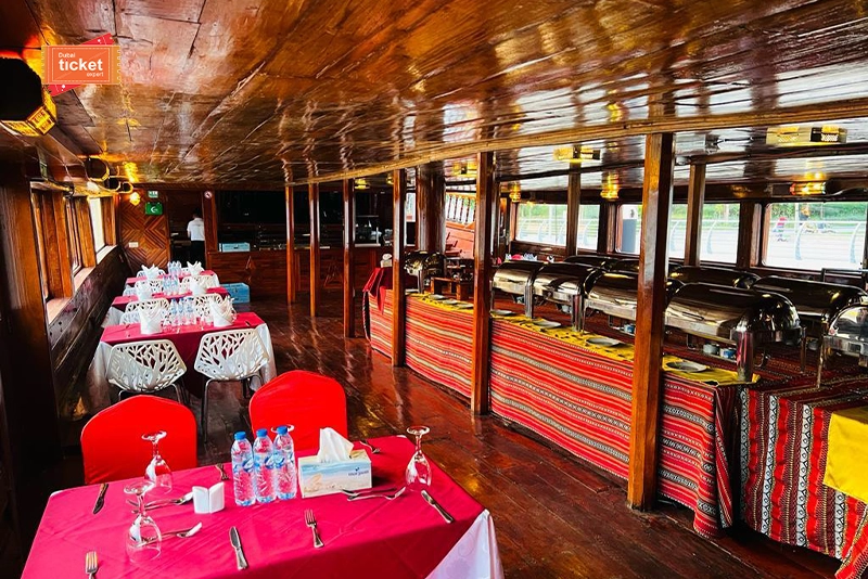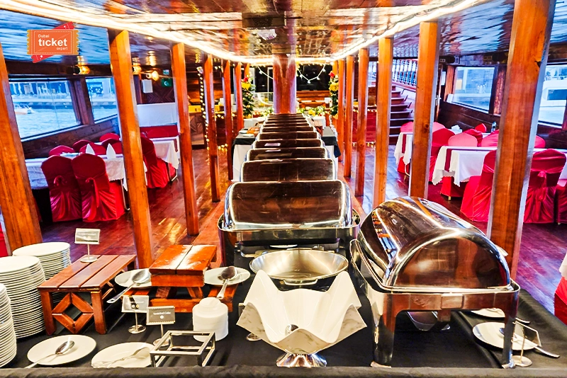 Furthermore, it has on-board amenities such as free Wi-Fi, separate men’s and women’s washroom facilities, and flexible seating arrangements to suit all tastes. Be it a special evening or just a desire to spend a peaceful time, Al Mansour Dhow Dinner Cruise is sure to charm you. Book Al Mansour Dhow Dinner Cruise on Dubai Ticket Expert and take advantage of the best early bird offers and unbeatable group discounts!