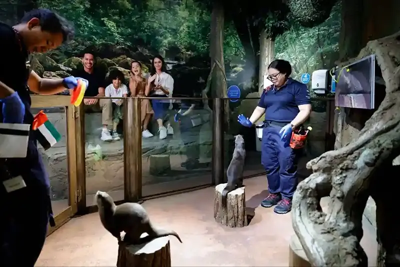 - Always maintain a distance from the aquarium and exhibits. Do not disturb the animals or feed them.