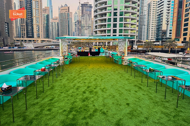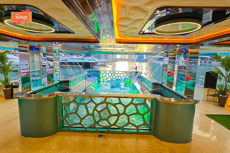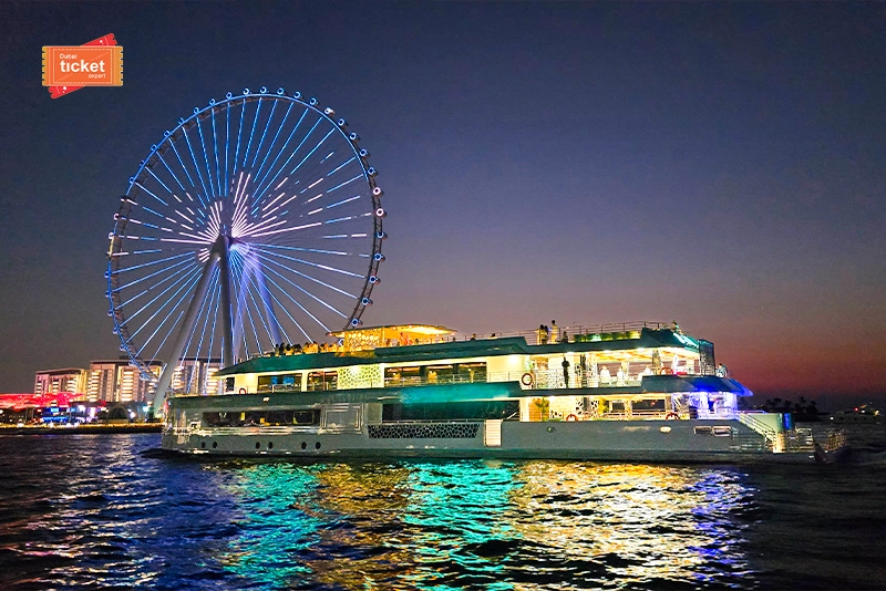 For a panoramic view of Dubai’s glittering skyline, a ride on Luxury Dinner Cruise Dubai on the calm waters of Dubai’s seas is just perfect. We welcome you aboard a cruise extending past Dubai’s iconic tourist hotspots like Blue Waters Island, Dubai Marina, JBR, and Atlantis the Palm.