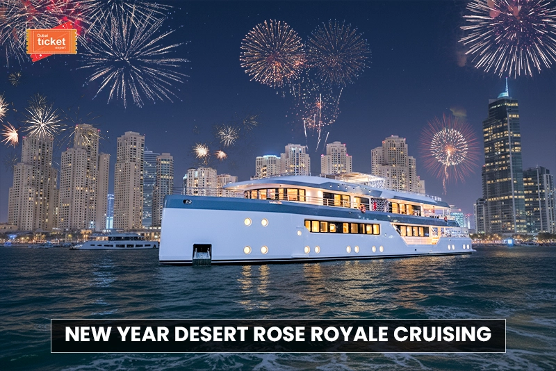 Watching fireworks light up Dubai’s skyline while you sail in style—that’s exactly what the 2027 New Year’s Eve on the Rose Royale is all about. This stunning 165-foot mega yacht promises an unforgettable night filled with live entertainment, delicious food, and front-row views of the city’s biggest celebrations. With open-air decks and a vibrant atmosphere, it’s the perfect place to say hello to the new year. Please make it a night you’ll never forget with Dubai Ticket Expert.
