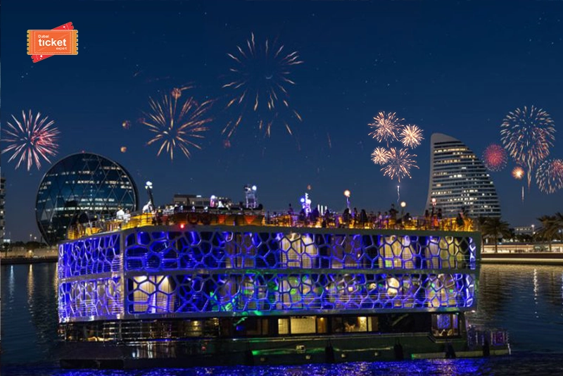 When midnight strikes, witness the stunning New Year fireworks that light up the Abu Dhabi skyline. The Orchid Floating Hotel promises an unforgettable NYE experience. Book your tickets now with DubaiTicketExpert for a magical evening with your loved ones.