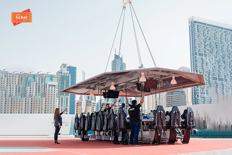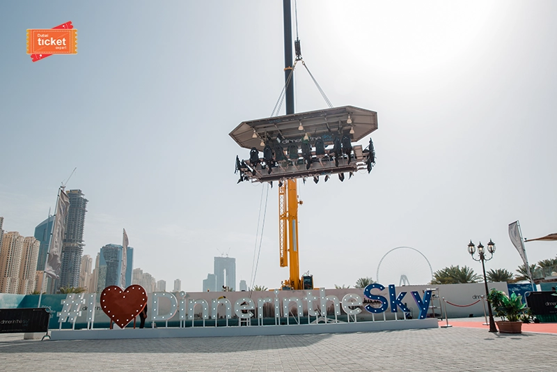 Dubai’s exciting Dinner in the Sky activity lasts for 90 minutes. After settling down, the platform will be raised. Once 90 minutes is over, it will be brought down.