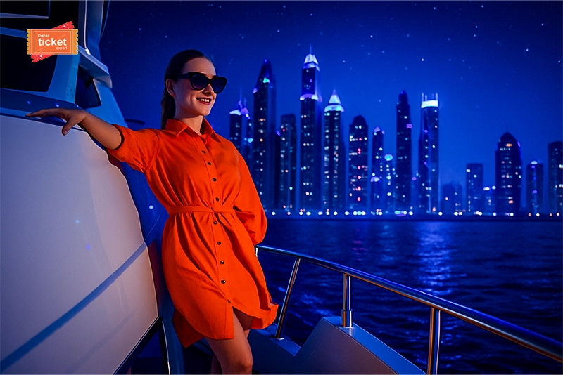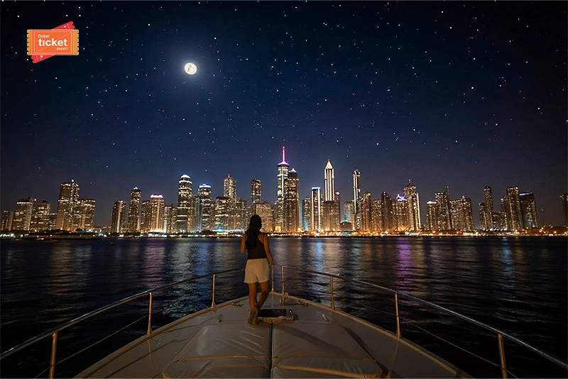 If you are a local in Dubai, then you are no stranger to the city’s beautiful nightlife but if you are a tourist, then you must not miss it. Moreover, we are offering the best way to experience the nightlife without any traffic hindrances that is Marina Nightlights With Dinner on a Shared Yacht tour. Not only you will get to see the beautiful skyline but also the famous landmarks on a lovely night. Watch them as they stand tall and shine brightly when the moon shines upon the city.
