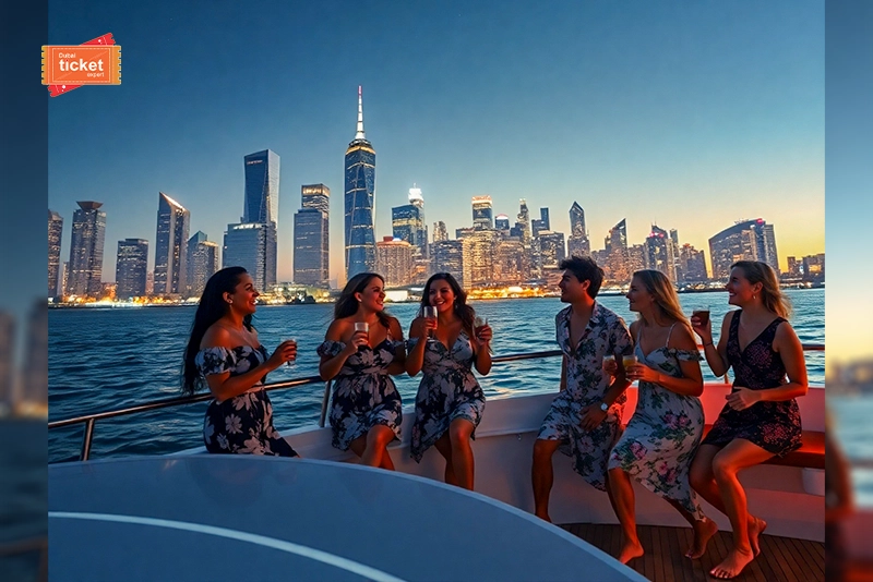 Make beautiful memories as you share the yacht with people of diverse cultures. In addition, take this time to make the best of your time with live BBQ food made freshly for all the passengers. Overall, the Marina Nightlights With Dinner is going to give you a perfect share of relaxing time while you sail across the JBR, Burj Al Arab, Atlantis, Marina, Palm Jumeirah, and Ain Dubai.